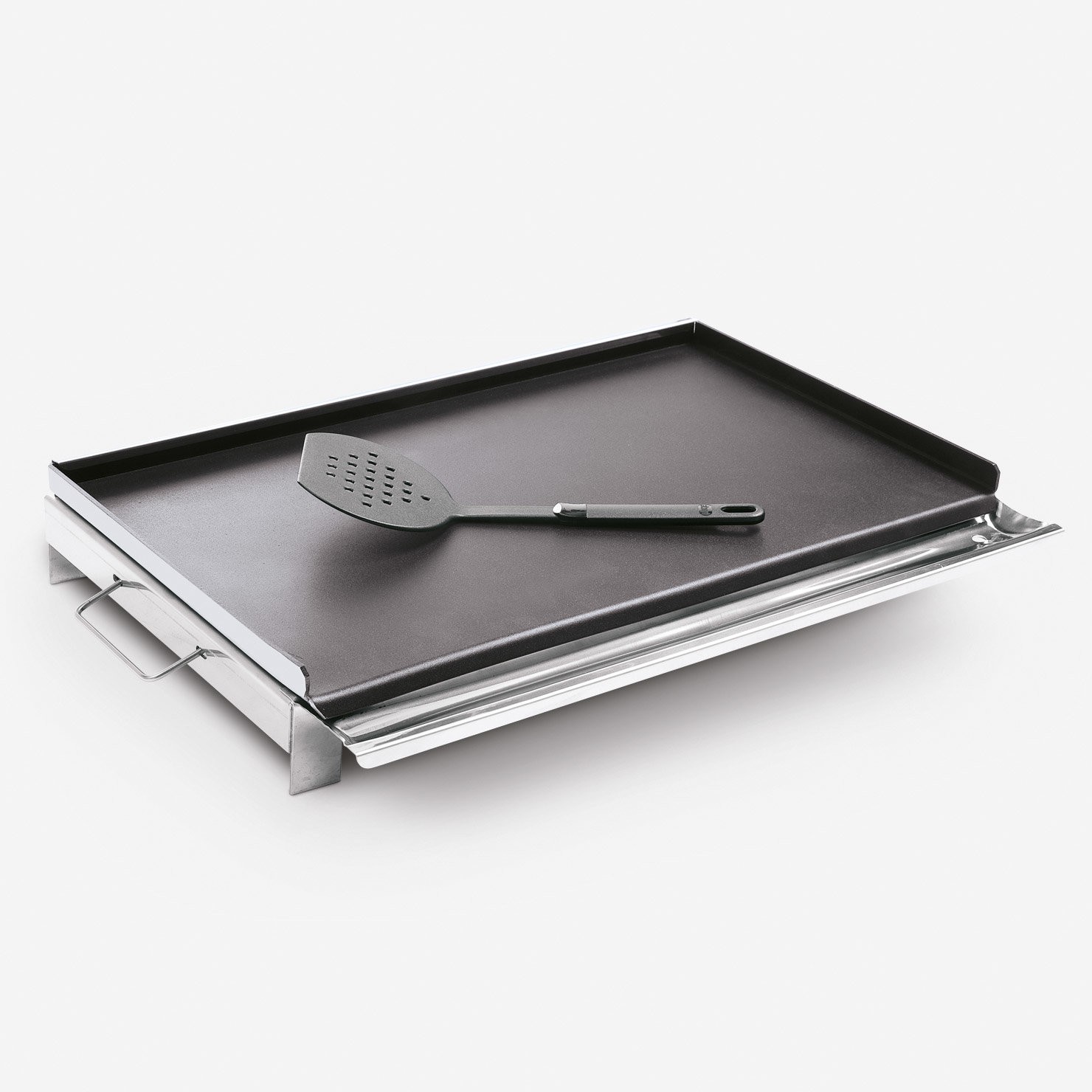 893620840A non-stick griddle made of aluminium with a stainless steel frame. It’s ideal for cooking without fats, it can be placed directly on the grill to cook on an open flame.